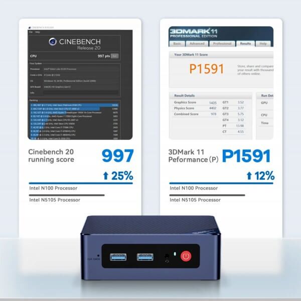 The Beelink Mini S12N100 Dubai Pro Mini Computer is powered by the latest 12th Intel Alder Lake-N100 processor, featuring impressive speeds of up to 3.4GHz, 4 cores, and 4 threads, along with a 6MB L3 cache. With a power consumption of just 6W, it offers significantly improved performance—over 20% faster than the Intel N5105 and N5095 CPUs—while maintaining energy efficiency. This makes it an ideal choice for a range of applications, including business, family NAS setups, FTP servers, offices, schools, hospitals, and industrial environments.