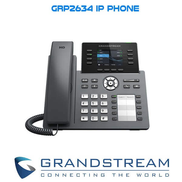 - Grandstream GRP2634 Dubai is an easy-to-use gadget that requires no technical expertise of its user. It is equipped with permanently-labelled buttons which are used to access various functions such as Speaker, Headset, Mute, Volume, Phone, History, Contacts, and Voicemail Message, as well as a permanently-labelled navigation cluster which enables the user to navigate the screen easily as desired. This saves time maximizing efficiency in the office.