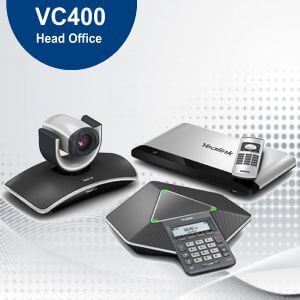 The Yealink VC400 video conferencing system structures a fixed multipoint switch unit. 4-way combined conferences in 1080p High Definition resolution are possible, plus support for an extra 1-way audio call, and varied procedures, codecs, bandwidth, resolutions and frame rates. The system also contains an HD PTZ camera and a phone with 3 panoramic microphone features.